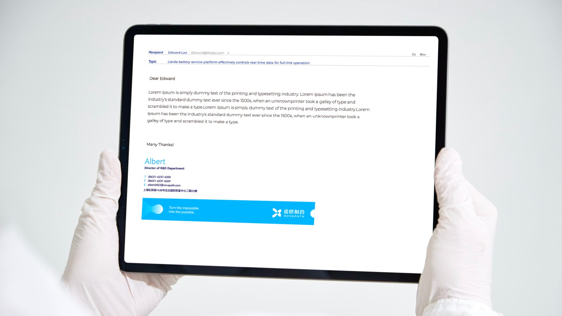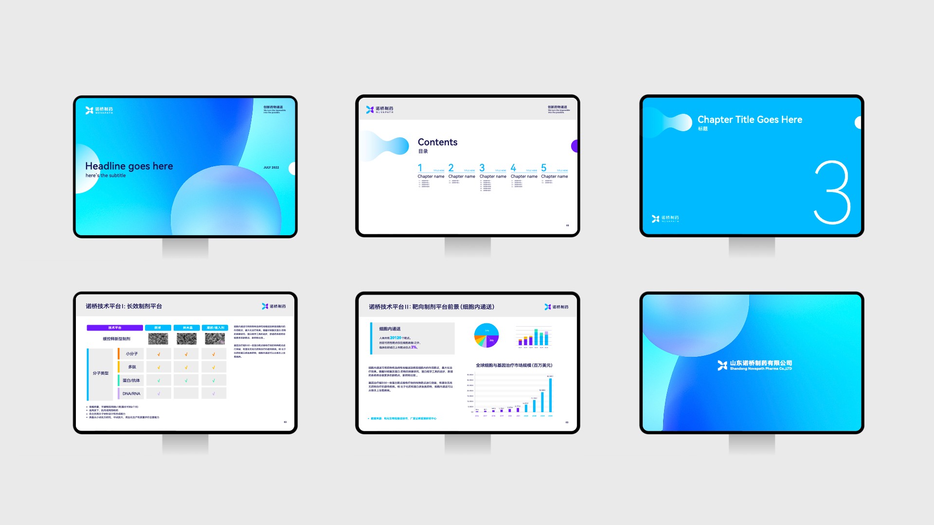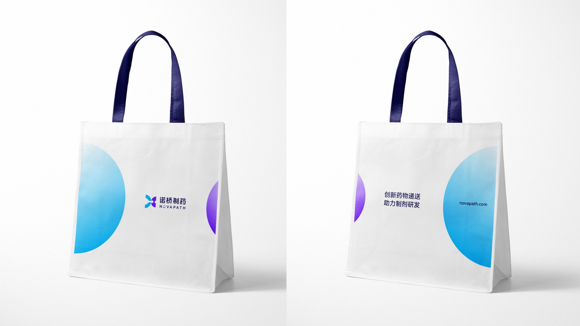 在品牌視覺系統的其他要素建設中,于色彩部分,我們使用了更明亮的藍色凸顯諾橋制藥的創(chuàng)新科研專業(yè)能力。又從諾橋藍中衍生出一個藍紫色,正所謂“青出于藍而勝于藍”,這組品牌主色明快、純粹,演繹了諾橋在不斷追求技術卓越創(chuàng)新中的探索精神。塑造了諾橋的色彩情緒識別,于圖形部分,我們結合了藥物遞送中最有價值的現象,通過對藥物的高效靶向遞送解決藥物研發(fā)及病癥難關的“最后一公里”,通過平面手法呼應藥物分子生物輪廓的圓形,延續(xù)圖形標志中的從左至右的穿透狀態(tài),將從虛到實、從散到聚的狀態(tài)發(fā)揮至諾橋品牌的主輔助圖形中,形成獨具個性的諾橋制藥圖形語言,有效反應了諾橋制藥的核心技術價值,在整體元素的有機結合之下,諾橋制藥通過視覺形象揉捏了技術價值與文化價值,將技術表達理念的想象帶到品牌識別中,形成一個獨特且具備專業(yè)質感的品牌印象,有效的幫助了諾橋制藥快速傳達的需求,更好的幫助該品牌在市場中形成聲量,提升商業(yè)價值。